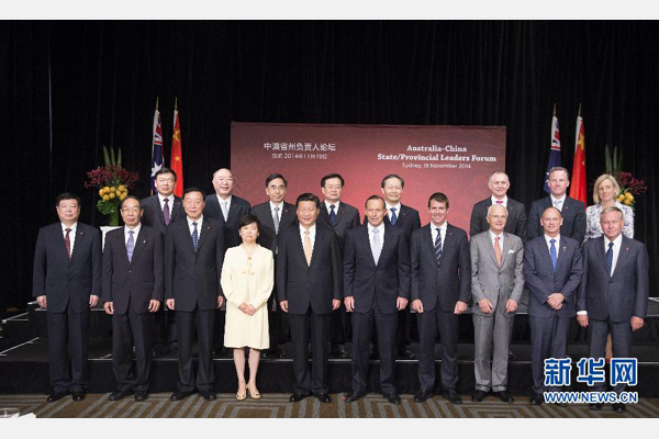 習(xí)近平和阿博特共同出席中澳省州負責(zé)人論壇