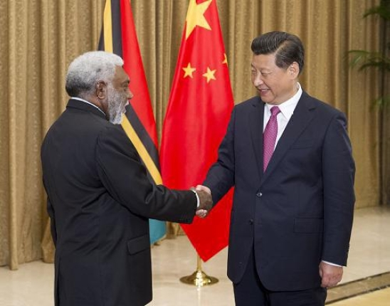 ????(圖為2014年 8月17日,國(guó)家主席習(xí)近平在南京會(huì)見(jiàn)瓦努阿圖總理納圖曼。新華社記者王曄攝)