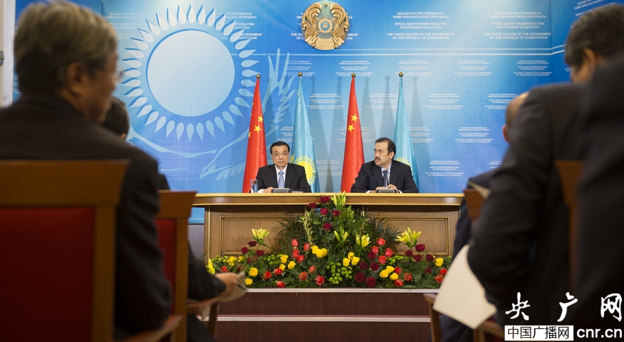 李克強首先以哈語問好,他表示,中哈是命運共同體,不僅政治互信水平高,經濟互補性也很強。哈薩克斯坦要推進“光明之路”計劃,重點是發(fā)展基礎設施。中國有這方面的經驗,也愿意和哈薩克斯坦共同合作,參與“光明之路”的建設。