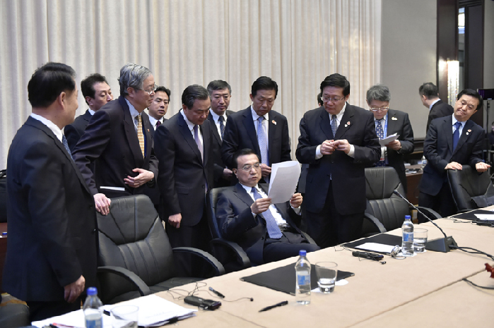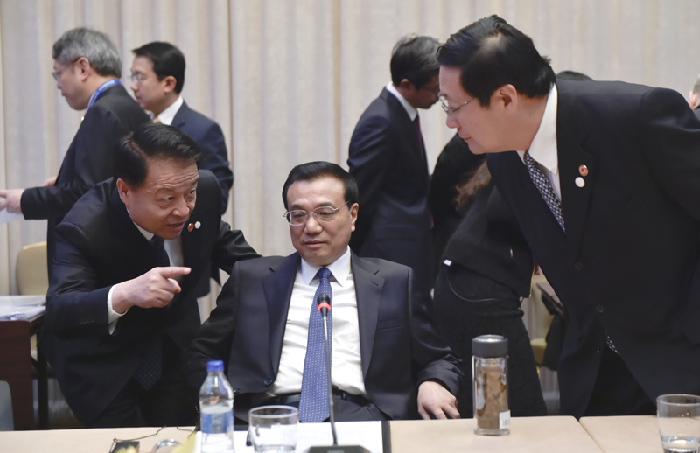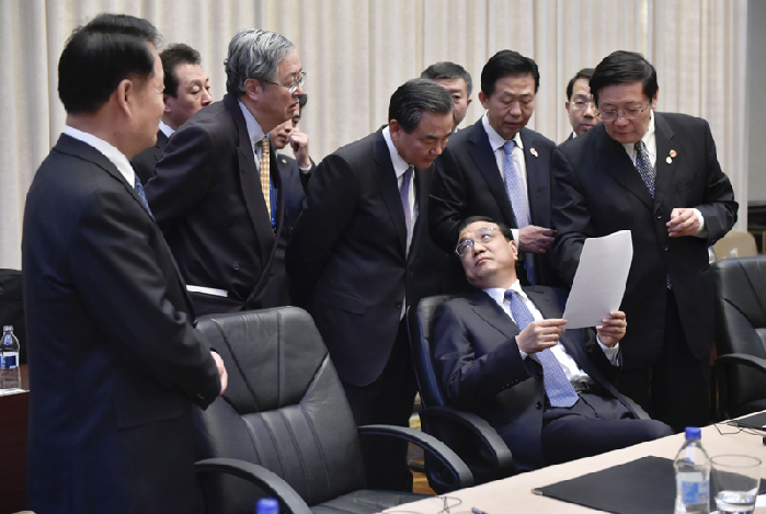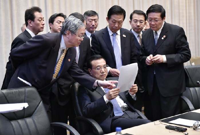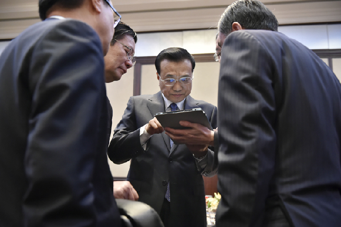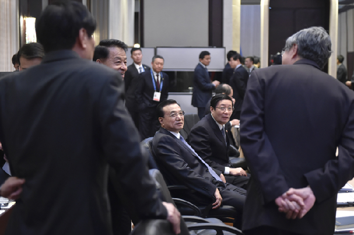 會議間隙的李克強。中新社 劉震 攝