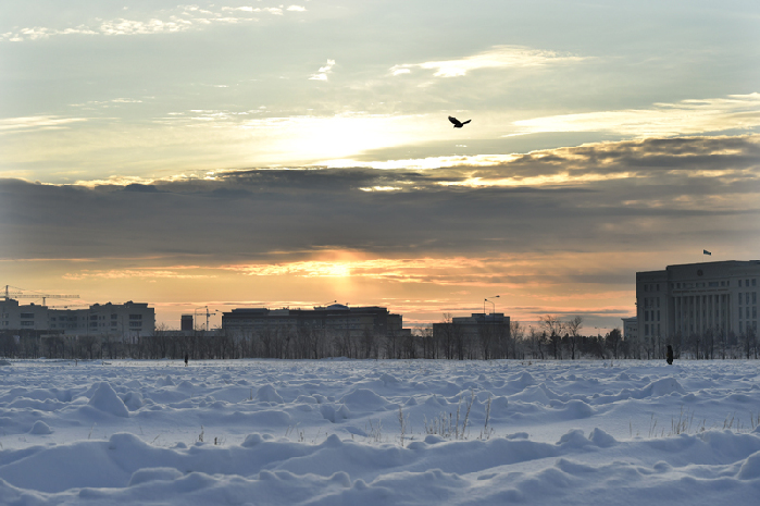 總理抵達(dá)當(dāng)天的阿斯塔納。中新社 劉震 攝