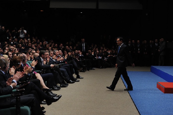 李克強(qiáng)出席中國—中東歐國家第四屆經(jīng)貿(mào)論壇并致辭。 新華社 饒愛民 攝