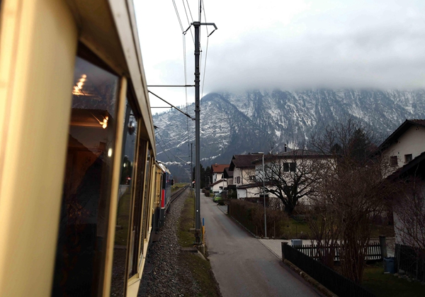(克強(qiáng)總理乘坐的專列駛往達(dá)沃斯,鐵路依山上行,窗外景色怡人。攝影:李濤)