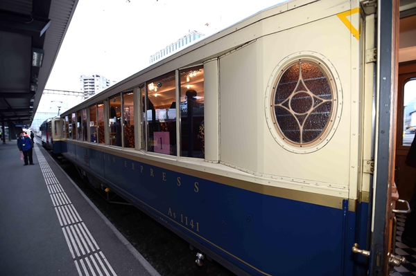 前往達(dá)沃斯通常乘坐的紅色窄軌小火車很有特色??藦?qiáng)總理此次乘坐的專列是瑞方鐵路公司專門(mén)用于租借的,充當(dāng)過(guò)不少國(guó)家領(lǐng)導(dǎo)人的專列,顏色不同于普通小火車的紅色,而是藍(lán)白配色的。