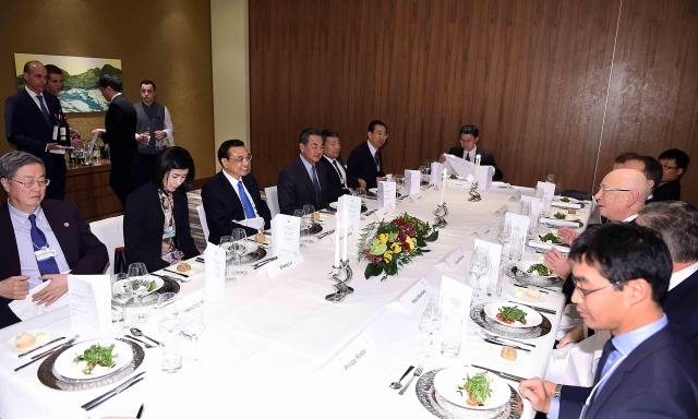 不顧旅途勞頓,克強總理剛下榻酒店就會見了施瓦布,并應邀出席小范圍晚宴。