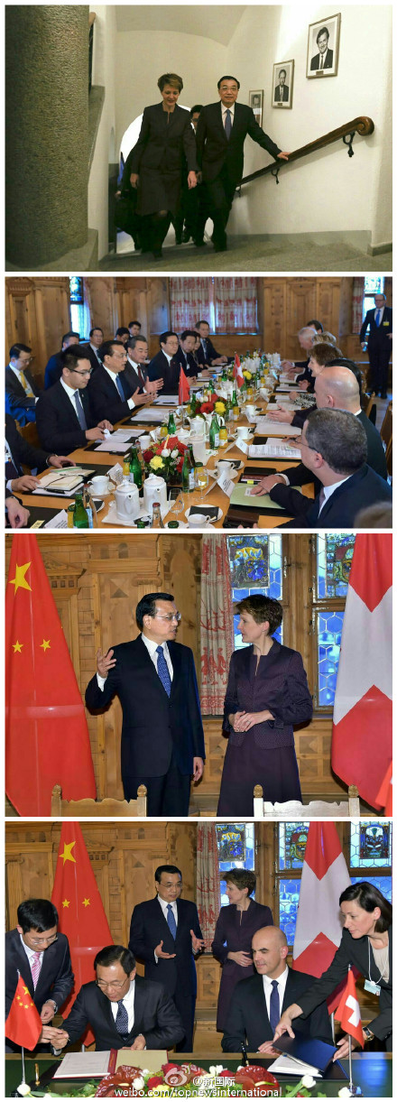 ??? 新華網(wǎng)北京1月22日電 據(jù)新華社“新國際”微博報(bào)道,當(dāng)?shù)貢r(shí)間21日下午,國務(wù)院總理李克強(qiáng)同瑞士聯(lián)邦主席索瑪魯加舉行會(huì)談。李克強(qiáng)說,中方歡迎瑞方參與人民幣國際化進(jìn)程,支持蘇黎世人民幣離岸市場建設(shè),愿給予瑞士500億元人民幣的合格境外投資者配額,希望瑞方為中資銀行在瑞開設(shè)分行提供便利。