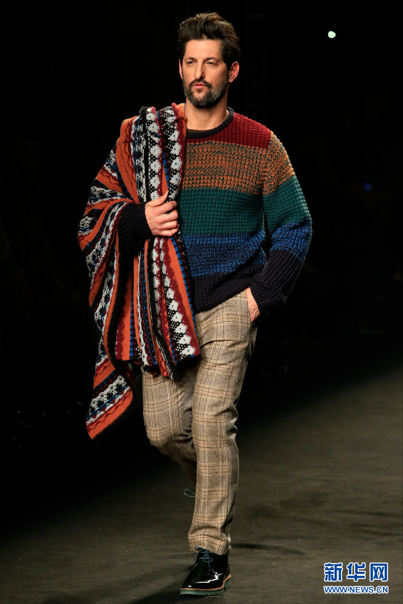 ????西班牙本土品牌Desigual3日在第15屆“080巴塞羅那時裝展”(080 Barcelona Fashion)上推出了自己的新款男裝。一水兒的型男帥哥走在T臺上,也是一道別樣的風(fēng)景。(?!ぐ屠准{ 攝)