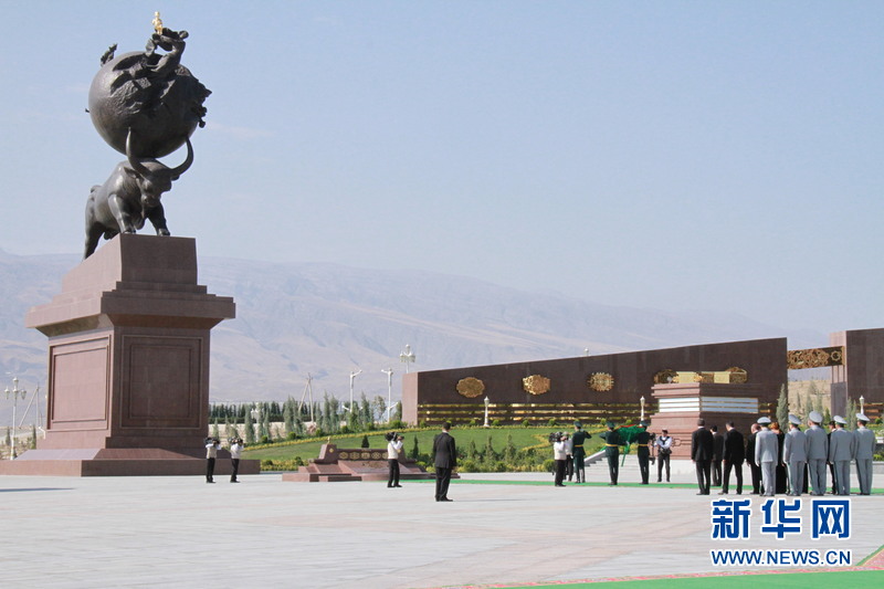 土庫曼斯坦總統(tǒng)和內(nèi)閣成員向地震紀念碑獻花。(新華網(wǎng)記者 盧敬利 攝)