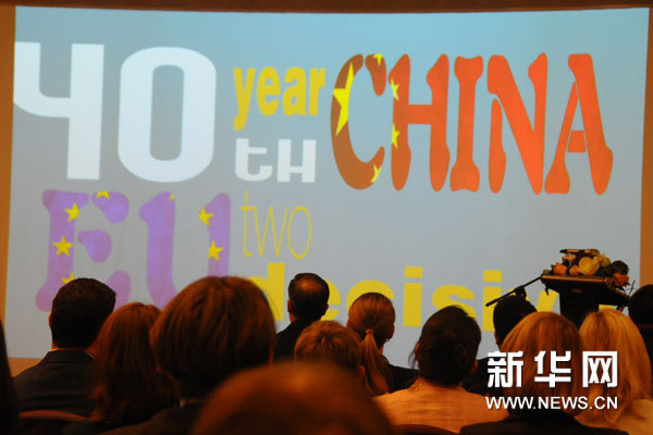??? 7月16日,第十屆歐洲外交官研討班開(kāi)班儀式暨《中國(guó)歐盟建交40周年》紀(jì)念畫(huà)冊(cè)發(fā)行儀式在京舉行,圖為學(xué)員們觀看中國(guó)歐盟四十周年紀(jì)念短片。新華網(wǎng)記者 張藝 攝