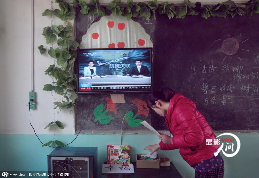 2014年3月8日上午8時左右,馬航宣布MH370航班失聯(lián)。這一消息猶如一個重磅炸彈,迅速引起了全國乃至世界范圍內(nèi)的民眾的持續(xù)關(guān)注。2014年3月14日,在山東曲阜一家幼兒園,一名幼兒教師在備課,黑板上的電視正在播放失聯(lián)航班的報道。