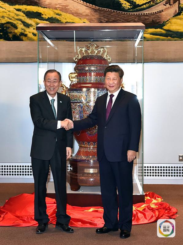 習(xí)近平出席中國向聯(lián)合國贈(zèng)送“和平尊”儀式。新華社記者李濤攝