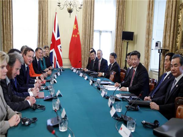習(xí)近平說(shuō):“中英關(guān)系和中歐關(guān)系發(fā)展面臨繼往開(kāi)來(lái)的重要機(jī)遇。英國(guó)是歐盟重要成員國(guó),中英關(guān)系同中歐關(guān)系相輔相成?!?/p>
