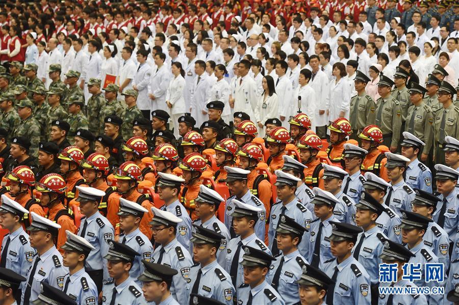 ??? 5月27日,駐杭部隊(duì)官兵、武警官兵、公安干警、志愿者、醫(yī)護(hù)人員、賓館保障人員及各界代表參加誓師大會(huì)。 當(dāng)日,“決戰(zhàn)100天全力保峰會(huì)”迎接G20誓師大會(huì)在浙江杭州舉行。 新華社記者黃宗治攝