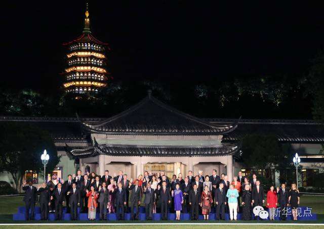在杭州國際博覽中心,習主席迎接出席G20峰會的G20成員領導人、嘉賓國領導人和有關國際組織負責人,和大家一一握手,并合影留念。