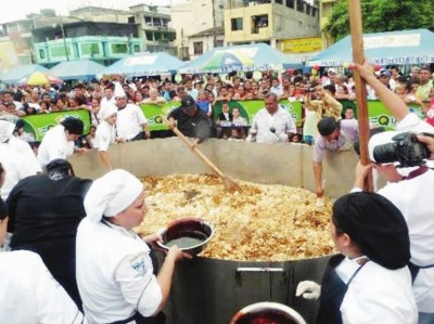 克韋多市作為“炒冷飯”的故鄉(xiāng),為了推廣國內(nèi)和國際旅游,在2013年還曾做過一個世界最大的“炒冷飯”。當時使用的鍋直徑4米,深1.5米,使用的食材有500公斤大米、1000個雞蛋、50升油、三大桶醬油,還有上百公斤的雞肉、蝦仁等,40多名廚師學校的學生一起參與了制作?,F(xiàn)場數(shù)千民眾隨后一起享用了這個巨無霸“炒冷飯”。
