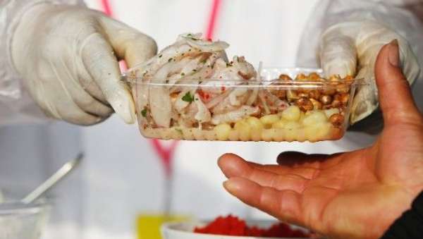 ????“塞維切”是深受秘魯人喜愛的傳統(tǒng)美食,其基本做法是將經(jīng)過加工的鮮魚、蝦、貝類等海產(chǎn)品與切碎的洋蔥、辣椒等用檸檬汁腌制而成,享用時配上煮熟的紅薯和嫩玉米等,被譽為秘魯“國菜”。