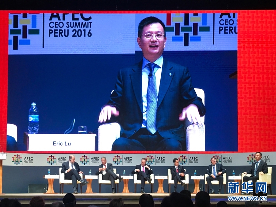 ????當(dāng)?shù)貢r(shí)間11月19日,APEC工商領(lǐng)導(dǎo)人峰會舉行主題為“重新設(shè)計(jì)貿(mào)易”的現(xiàn)場討論會。圖為聚貿(mào)電子商務(wù)有限公司董事長陸宏翔在討論會上發(fā)言。