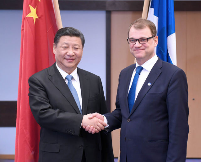 4月5日,國(guó)家主席習(xí)近平在赫爾辛基會(huì)見(jiàn)芬蘭總理西比萊。(新華社記者張鐸攝)