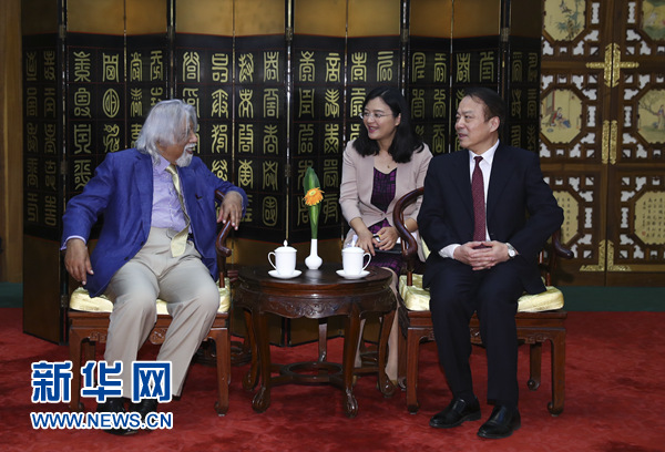 6月9日,新華社總編輯何平在北京會見來華出席金磚國家媒體高端論壇的印度ABP電視新聞網(wǎng)主席阿維克·沙卡爾。 新華社記者謝環(huán)馳攝