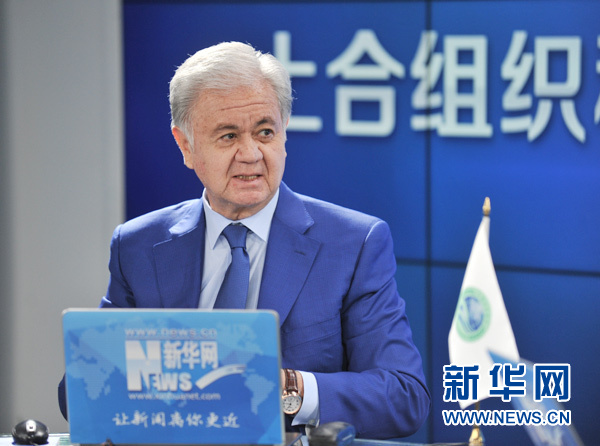 6月27日,上海合作組織秘書長(zhǎng)拉希德·阿利莫夫與新華網(wǎng)友在線交流。新華網(wǎng) 李清攝