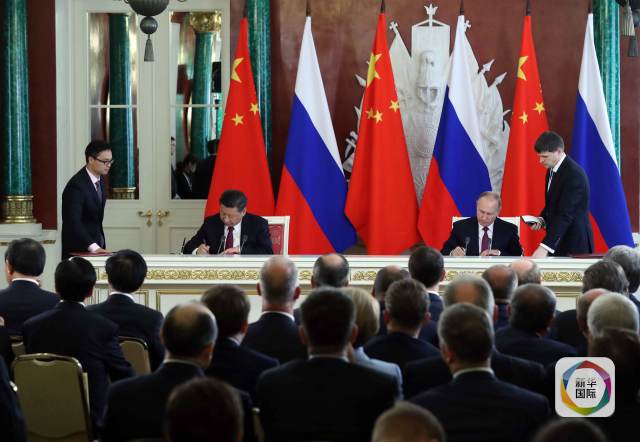 7月4日,國家主席習(xí)近平在莫斯科克里姆林宮同俄羅斯總統(tǒng)普京舉行會(huì)談。這是會(huì)談后,兩國元首共同出席簽字儀式。新華社記者 謝環(huán)馳 攝