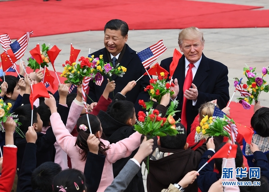 11月9日,國家主席習(xí)近平在北京人民大會堂東門外廣場舉行歡迎儀式,歡迎美利堅合眾國總統(tǒng)唐納德·特朗普對中國進行國事訪問。 新華社記者饒愛民攝