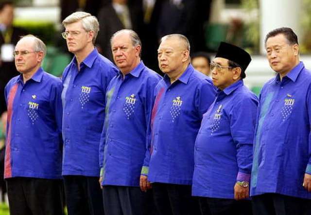 1993年,首屆APEC領(lǐng)導(dǎo)人非正式會(huì)議在美國西雅圖召開。各經(jīng)濟(jì)體領(lǐng)導(dǎo)人不帶助手和隨身翻譯,不穿正裝。從那以后,在一年一度的APEC領(lǐng)導(dǎo)人非正式會(huì)議期間,東道主通常會(huì)為與會(huì)領(lǐng)導(dǎo)人提供特別制作的當(dāng)?shù)貍鹘y(tǒng)服裝,在宣介東道主傳統(tǒng)文化的同時(shí),也體現(xiàn)“亞太大家庭”的理念。