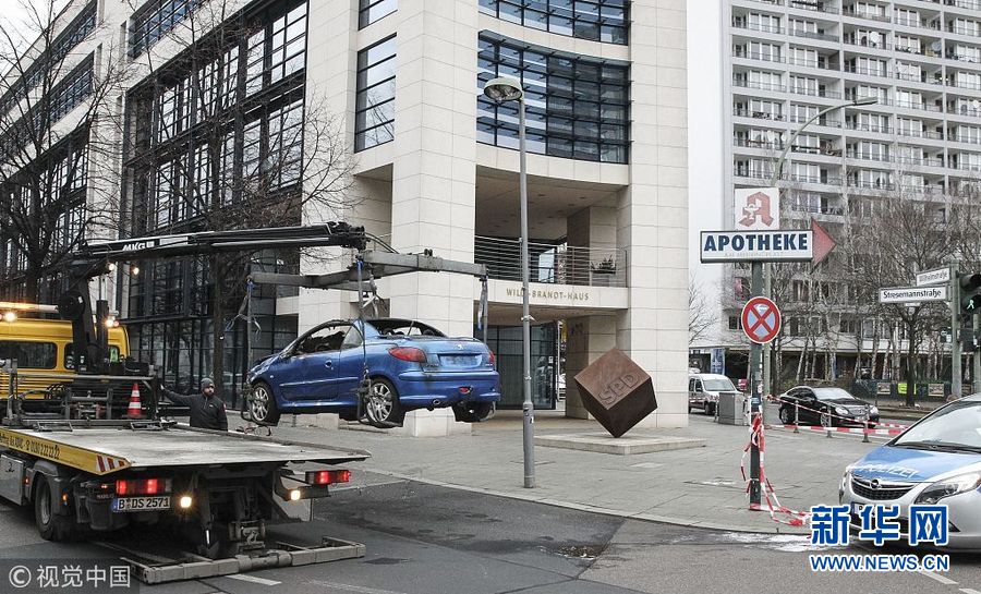 12月25日,德國柏林,一輛轎車闖入社民黨總部大樓并撞毀。(圖片來源:視覺中國)