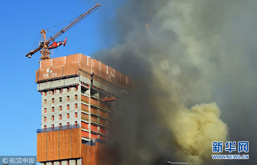 12月25日,韓國水原市,當?shù)匾惶幑⑹┕がF(xiàn)場發(fā)生火災,現(xiàn)場濃煙滾滾。(圖片來源:視覺中國)