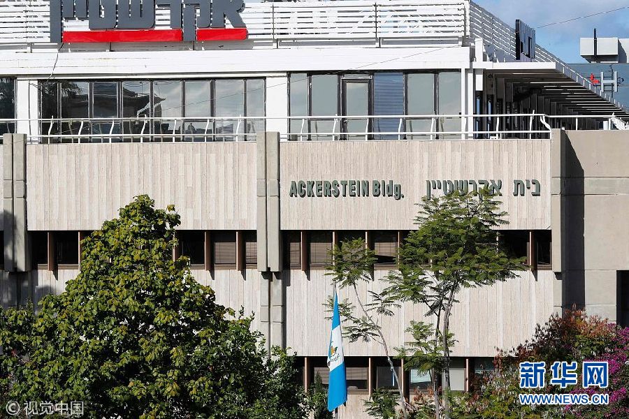 當?shù)貢r間25日,以色列荷茲利亞,危地馬拉駐以色列大使館。據外媒報道,危地馬拉總統(tǒng)吉米?莫拉萊斯本月24日宣布,危地馬拉決定將本國駐以色列大使館從特拉維夫前往耶路撒冷。(圖片來源:視覺中國)