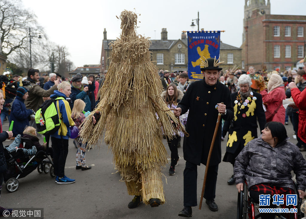 當(dāng)?shù)貢r(shí)間2018年1月13日,英國劍橋郡惠特爾西,民眾打扮成憨厚的“稻草熊”等各種形象,伴隨著樂隊(duì)的奏樂游行,慶祝第39屆惠特爾西“稻草熊”節(jié)。(圖片來源:視覺中國)