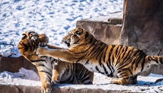 哈爾濱東北虎進(jìn)行野化訓(xùn)練 雪地里追雞