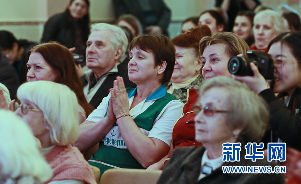 基輔市敬老院的孤殘老人們興致勃勃地觀看孔院師生帶來的文藝節(jié)目。新華網發(fā)(陳俊鋒攝)