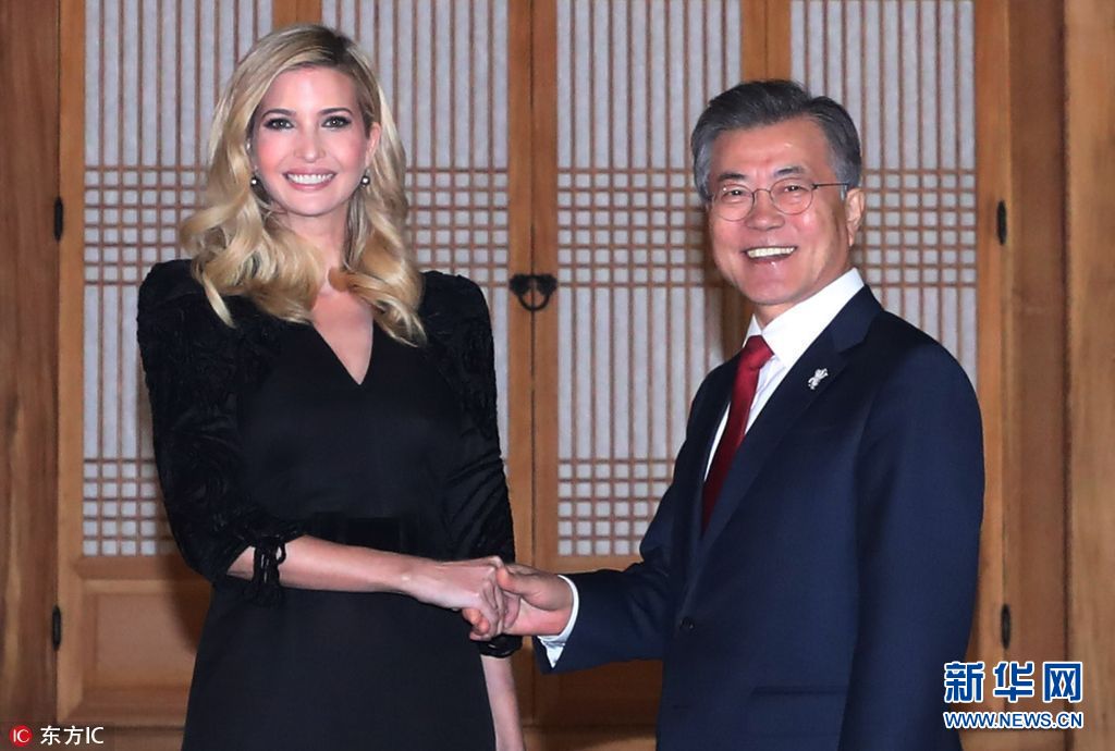 當(dāng)?shù)貢r(shí)間2018年2月23日,韓國(guó)首爾,韓國(guó)總統(tǒng)文在寅夫婦在青瓦臺(tái)設(shè)晚宴,歡迎伊萬(wàn)卡來(lái)訪(fǎng)。美國(guó)總統(tǒng)特朗普之女、總統(tǒng)助理伊萬(wàn)卡率領(lǐng)的美國(guó)代表團(tuán)23日抵韓進(jìn)行訪(fǎng)問(wèn),并將出席平昌冬奧會(huì)閉幕式。(圖片來(lái)源:東方IC)