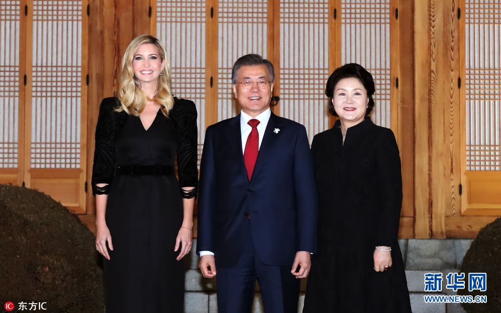 當(dāng)?shù)貢r間2018年2月23日,韓國首爾,韓國總統(tǒng)文在寅夫婦在青瓦臺設(shè)晚宴,歡迎伊萬卡來訪。美國總統(tǒng)特朗普之女、總統(tǒng)助理伊萬卡率領(lǐng)的美國代表團(tuán)23日抵韓進(jìn)行訪問,并將出席平昌冬奧會閉幕式。(圖片來源:東方IC)