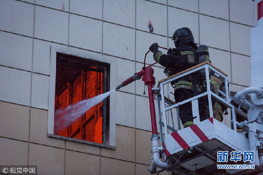 當(dāng)?shù)貢r(shí)間2018年3月25日,俄羅斯西西伯利亞南部城市克麥羅沃一家購物中心發(fā)生重大火災(zāi)。據(jù)俄緊急情況部26日發(fā)布的消息,大火已造成64人死亡。(圖片來源:視覺中國)