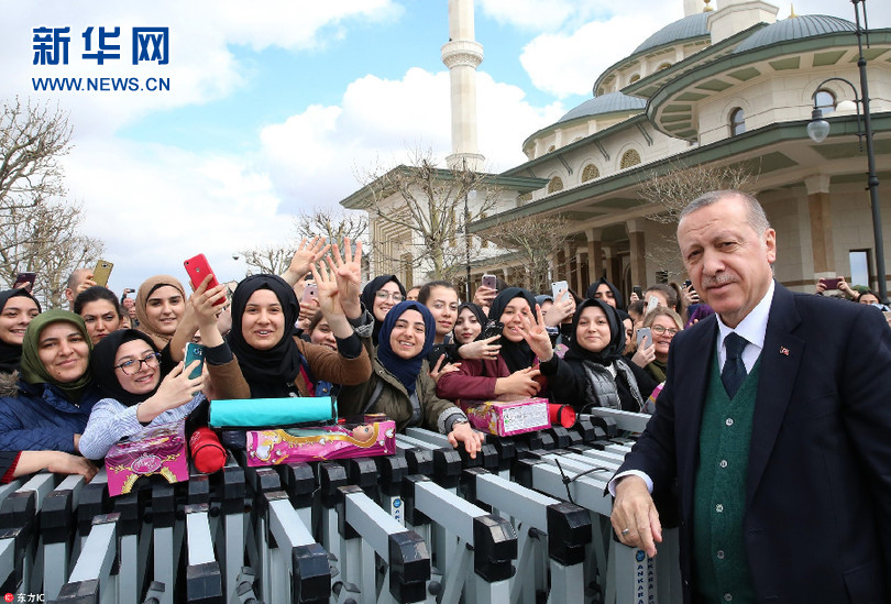 當?shù)貢r間3月30日,土耳其安卡拉,土耳其總統(tǒng)埃爾多安在星期五禮拜結(jié)束后與民眾打招呼。(圖片來源:東方IC)