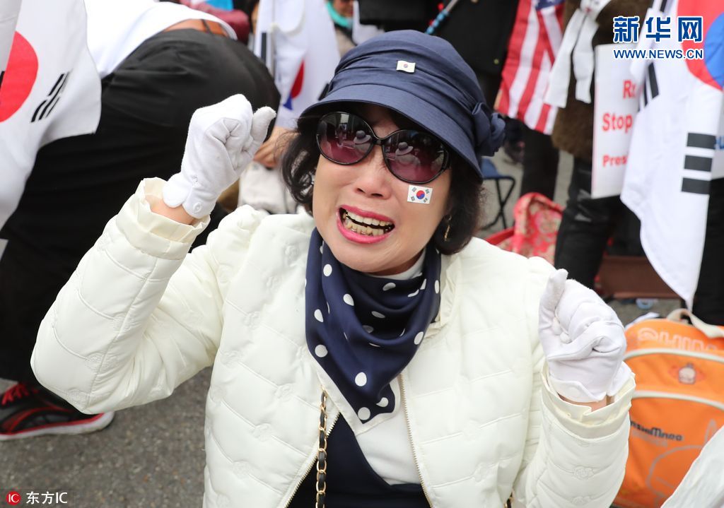 當(dāng)?shù)貢r(shí)間2018年4月6日,韓國首爾,在首爾中央地方法院前,舉行集會的韓國前總統(tǒng)樸槿惠的支持者得知樸槿惠一審獲刑24年傷心落淚。據(jù)報(bào)道,首爾中央地方法院對韓國前總統(tǒng)樸槿惠作出一審宣判,判處其有期徒刑24年,罰款180億韓元(約合人民幣1.06億元)。(圖片來源:東方IC)