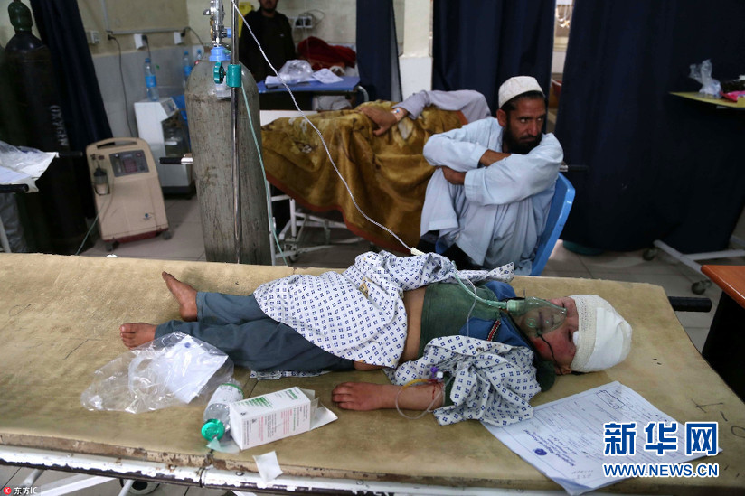 當(dāng)?shù)貢r間2018年4月20日,阿富汗賈拉拉巴德,受傷的兒童在醫(yī)院接受治療。4月19日,當(dāng)?shù)匕l(fā)生爆炸事故,致至少5名平民死亡,14人受傷。(圖片來源:東方IC)