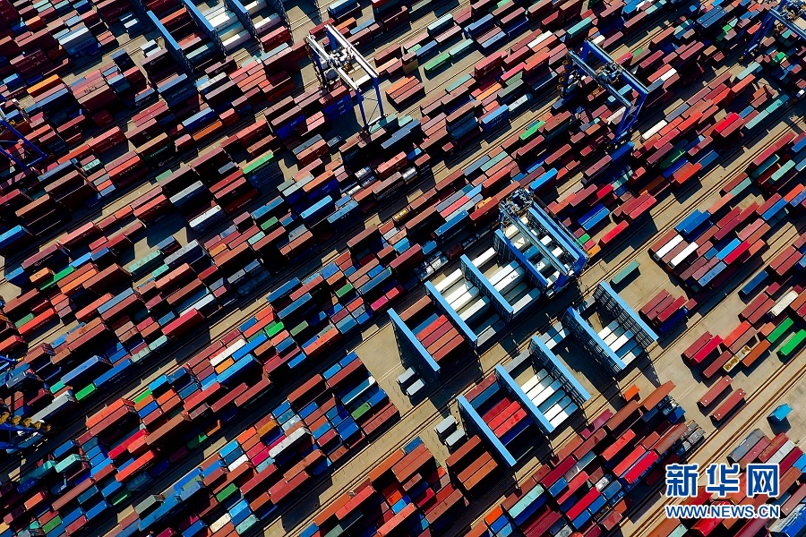 這是5月4日無人機拍攝的青島港前灣自動化集裝箱碼頭堆放的集裝箱。 5月的青島,海鳥翔集、船舶游弋,沿岸港口繁忙有序、貨暢其流…… 千百年來,來自大洋的貨船伴著海洋季風在這里靠岸停泊,產(chǎn)自亞歐大陸的商品沿著古絲綢之路運到這里裝船出海。天然的區(qū)位優(yōu)勢和歷史形成的通道,讓環(huán)膠州灣生長的青島,成為“一帶一路”沿線國家和地區(qū)的交流交融之地。這個6月,上海合作組織成員國領導人將首次聚首青島,世界為之矚目。“絲路精神”與“上海精神”將在這座城交織共鳴、和合共生,見證構建人類命運共同體在黃海之濱寫下濃重一筆。新華社記者 李紫恒 攝