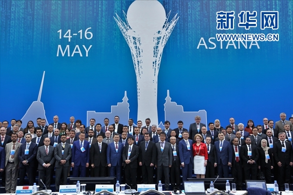 5月14日,在阿斯塔納,參會者合影。新華網(wǎng)發(fā) 阿比洛夫攝