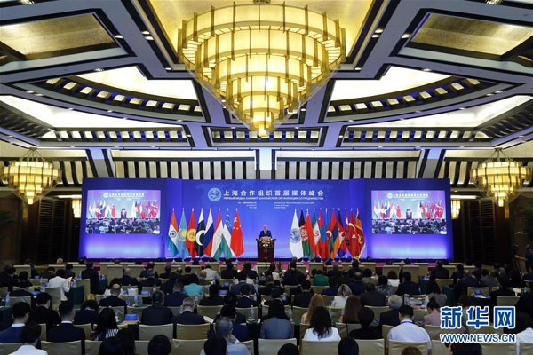 6月1日,由國務院新聞辦公室主辦的上海合作組織首屆媒體峰會在北京開幕。這是上合組織秘書長阿利莫夫在開幕式上致辭。 新華社記者 沈伯韓攝