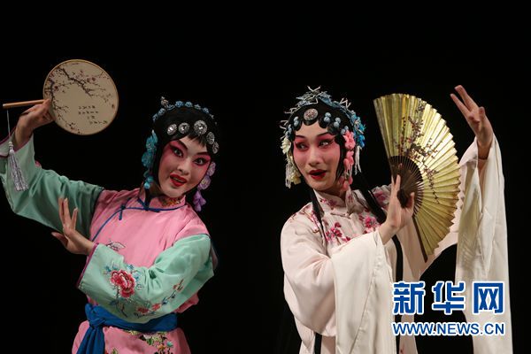 ?。对拢啡?,在白俄羅斯東部城市莫吉廖夫,兩位中國戲曲演員在表演昆曲《牡丹亭》。新華網發(fā) 魏忠杰 攝