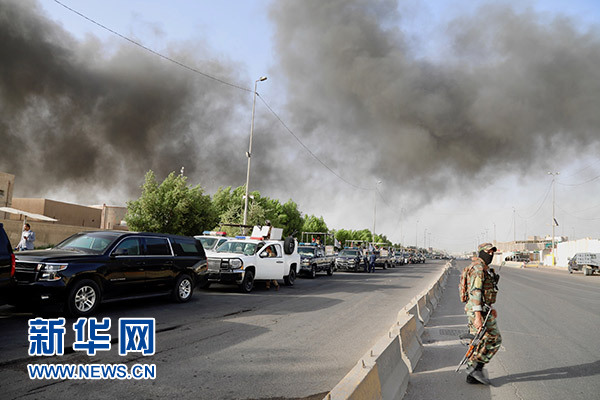 6月10日,在伊拉克首都巴格達(dá),伊拉克安全人員和消防人員在火災(zāi)現(xiàn)場(chǎng)工作。新華社發(fā)(哈利勒·達(dá)伍德 攝)