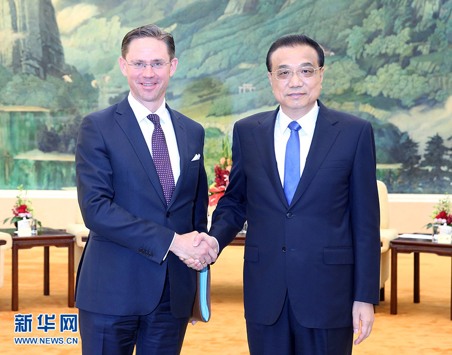 6月25日,國務院總理李克強在北京人民大會堂會見來華出席第七次中歐經(jīng)貿(mào)高層對話的歐盟委員會副主席卡泰寧。 新華社記者 姚大偉 攝