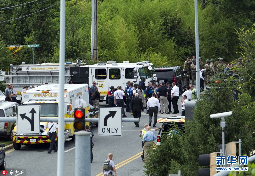 6月28日,美國(guó)馬里蘭州首府安納波利斯,當(dāng)?shù)匾粓?bào)社發(fā)生槍擊。馬里蘭州官員稱,槍擊目前已致5人死亡,多人受傷。(圖片來源:東方IC)