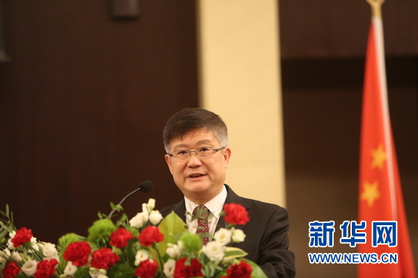 中國(guó)駐白俄羅斯大使崔啟明在獎(jiǎng)學(xué)金頒發(fā)典禮上致辭。新華網(wǎng)記者 魏忠杰攝