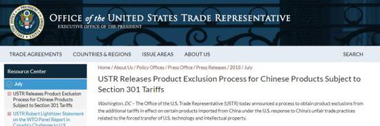 圖為美國(guó)貿(mào)易代表處官網(wǎng)上的該通知