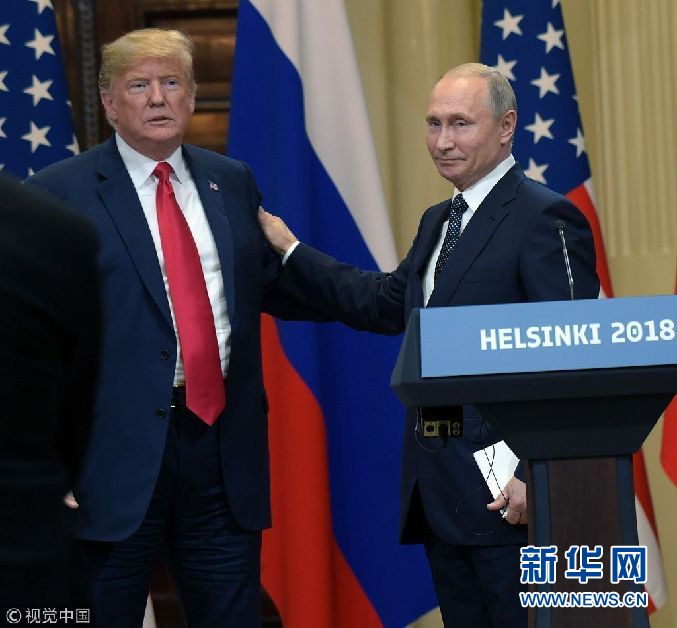 當地時間2018年7月16日,芬蘭赫爾辛基,美國總統(tǒng)特朗普與俄羅斯總統(tǒng)普京出席聯合新聞發(fā)布會。(圖片來源:視覺中國)