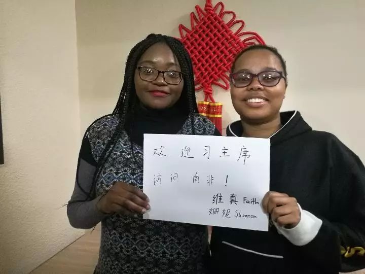“雖然中文學起來很有挑戰(zhàn)性,但這也恰恰是吸引我的原因?!眾櫮莺屯榫S真向記者驕傲地展示她們書寫的漢字:歡迎習主席訪問南非!